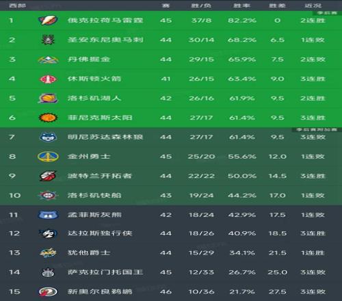 西部最新积分榜